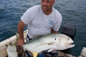 4. Now we pick a picture to use with the faded stripes. Note you may decide to go back and use a color other than gray for the foreground stripes. For our example we will use eddie with his fish: eddieandfish.jpg.